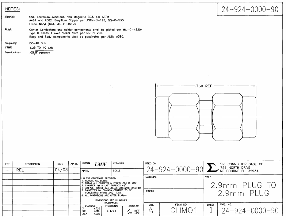 2.9mm Male/Male in series ADAPTER