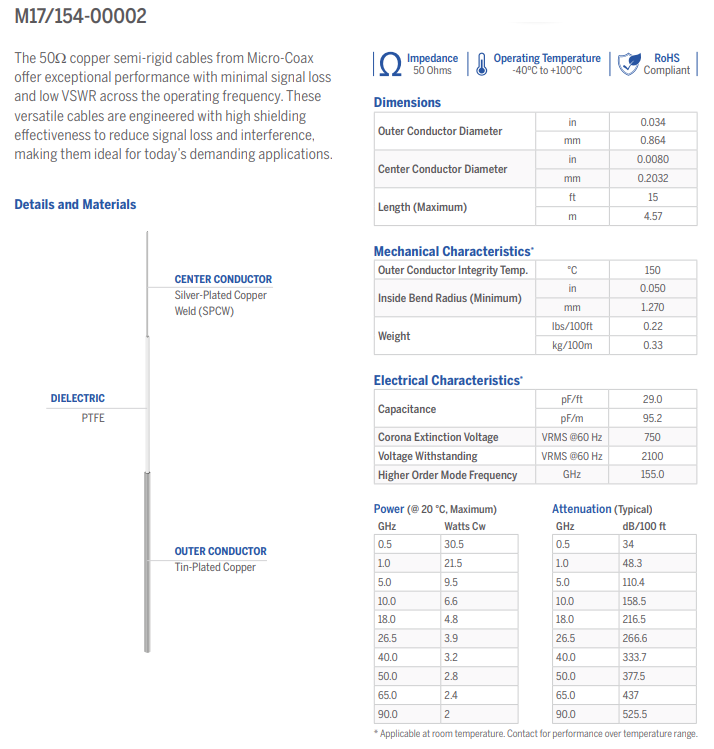 Semi Rigid cables are supplied in 5 ft. straight lengths.