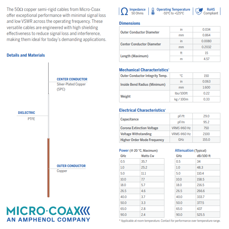 Semi Rigid cables are supplied in 5 ft. straight lengths.