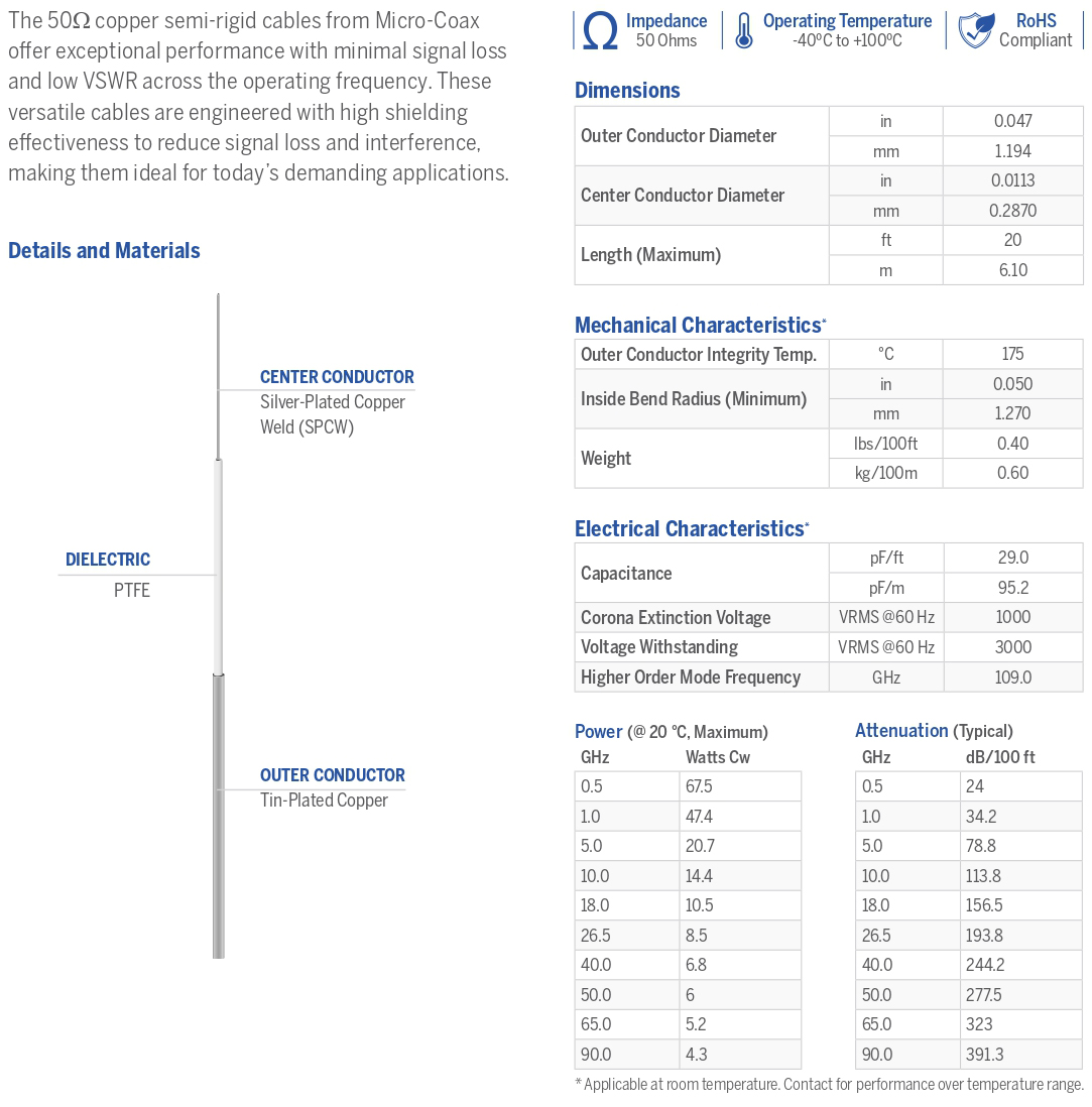 MIL-C-17 QPL Cable Tinned Copper Jacket SPCW Center Conductor (magnetic)