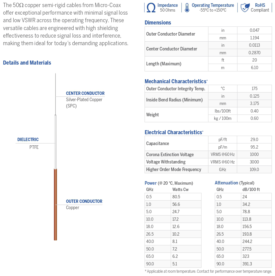 Copper Jacket, Non Magnetic SPC C.C., 50 OHM Cable