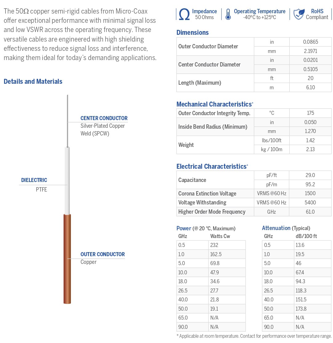 Semi Rigid cables are supplied in 5 ft. straight lengths.