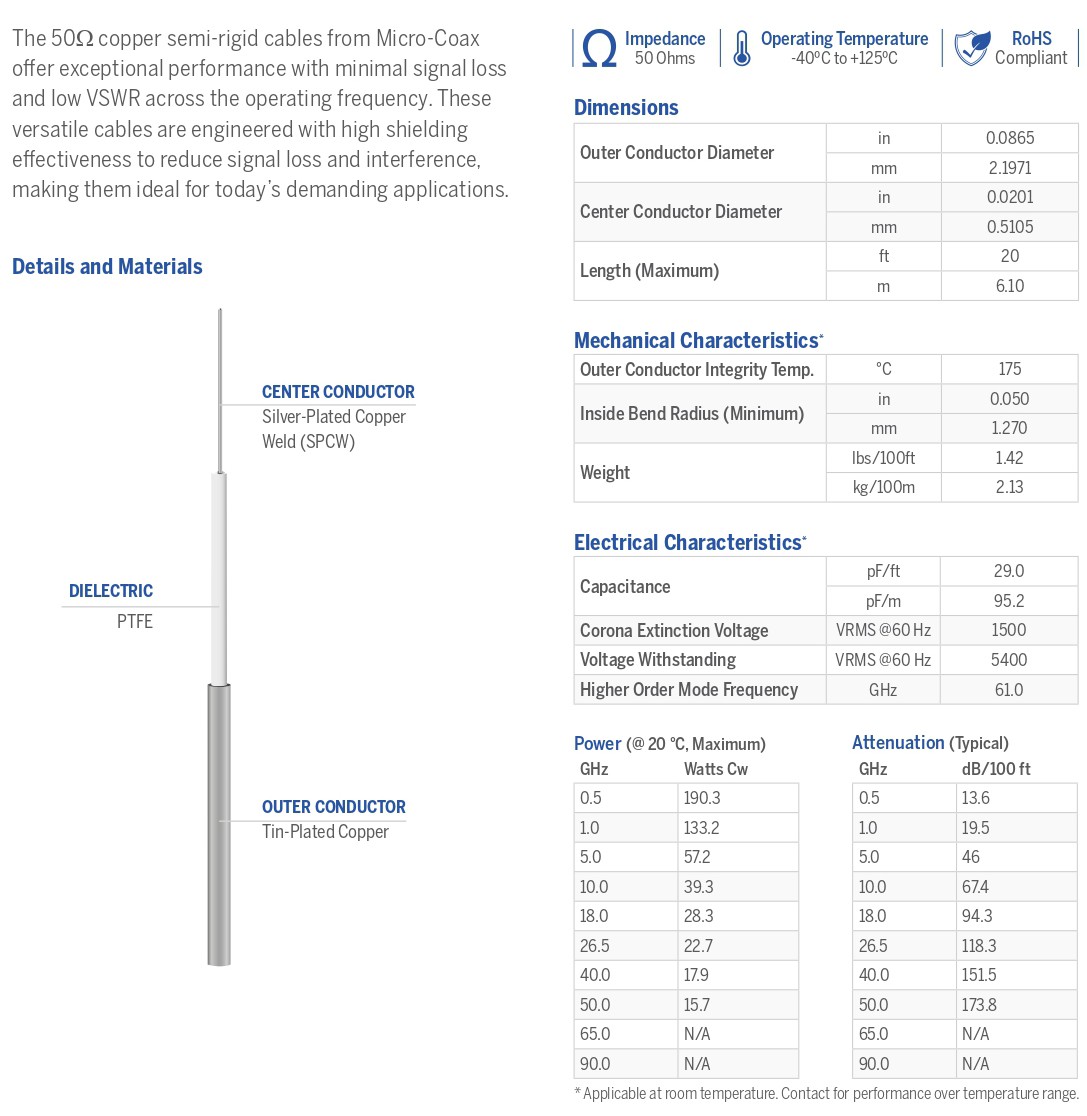 Tin Plated Jacket, Magnetic SPCW C.C., 50 OHM Cable
