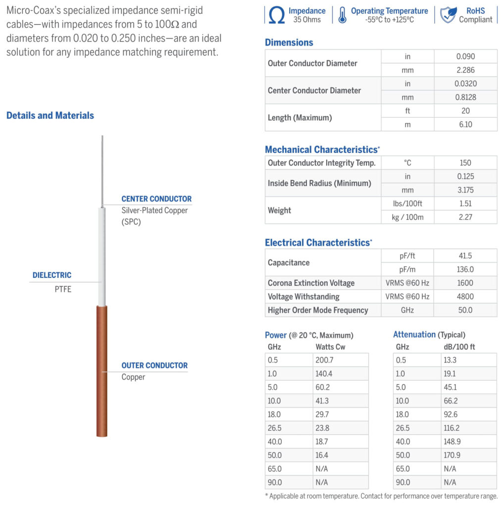Copper Jacket,  Non Magnetic SPC Center Conductor,  35 OHM Cable