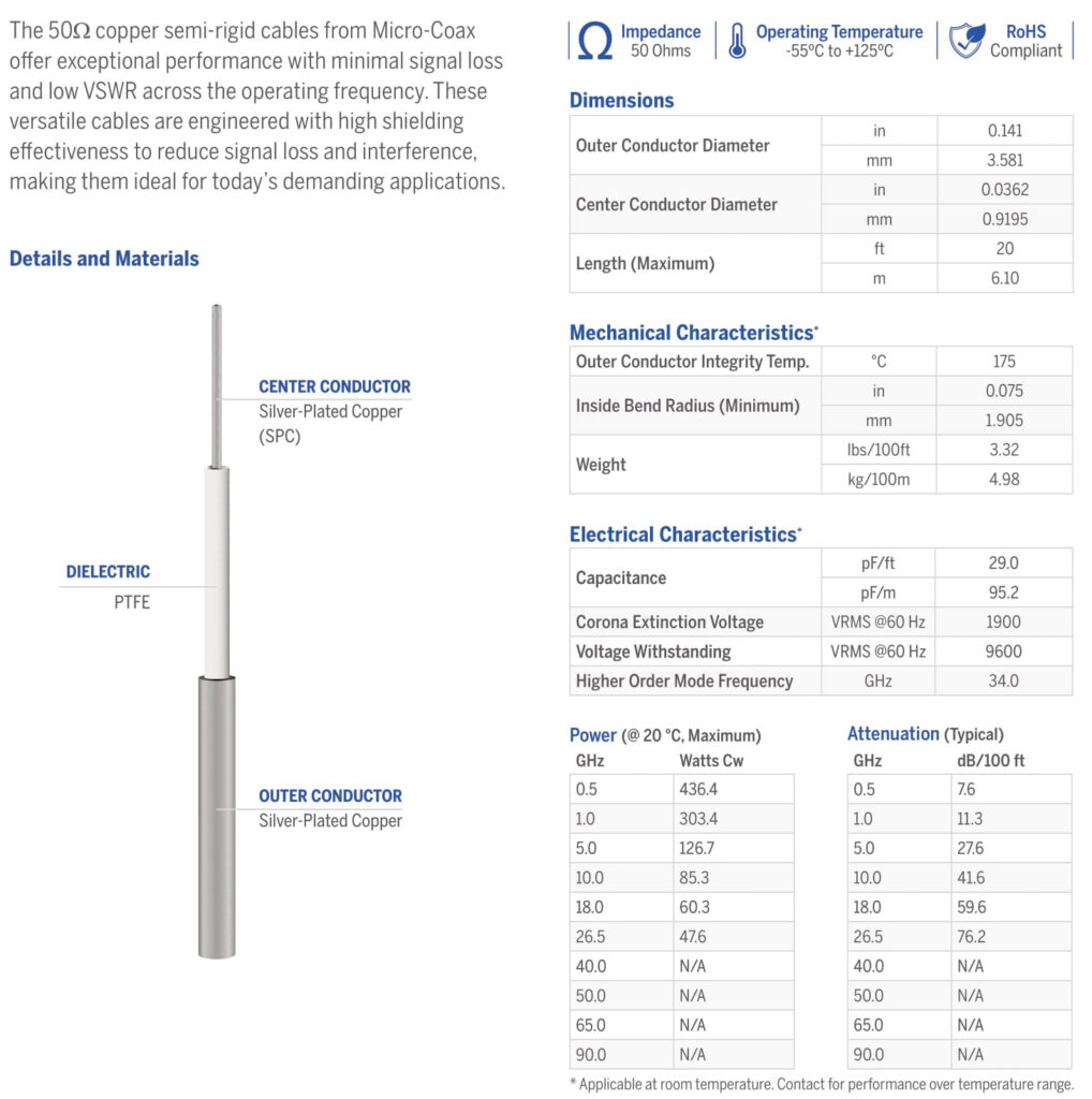Semi Rigid cables are supplied in 5 ft. straight lengths.