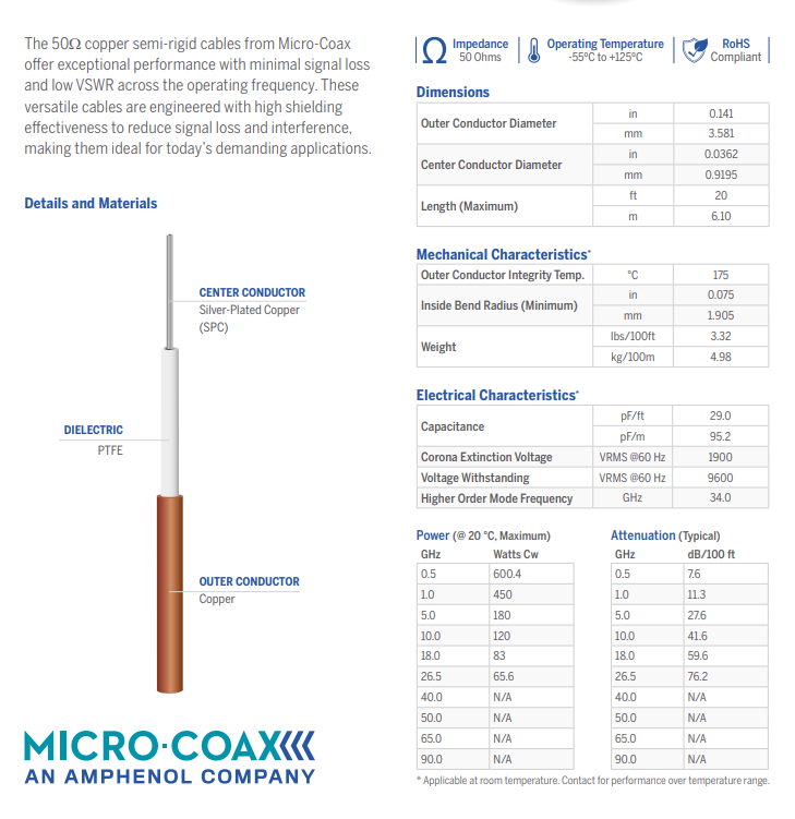 Copper Jacket, Non Magnetic Silver Plated Copper C.C., 50 OHM Cable