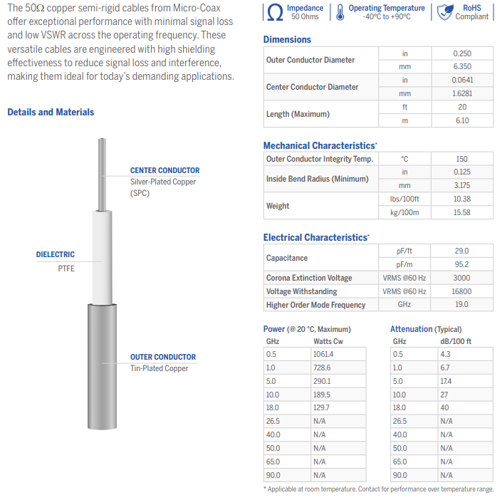 Semi Rigid cables are supplied in 5 ft. straight lengths.